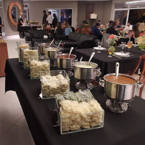 Selecione os pratos que vão encantar seus convidados. Nós cuidamos de todo o equipamento necessário, como rechauds, panelas e cubas de vidro, para manter a comida deliciosa.